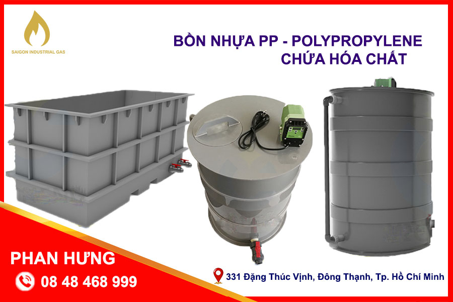 Bồn chứa hóa chất bằng nhựa Polypropylene – PP được thiết kế chuyên biệt dùng để lưu trữ các loại dung dịch như: axit, bazơ, dung môi, chất tẩy rửa, hóa chất công nghiệp.