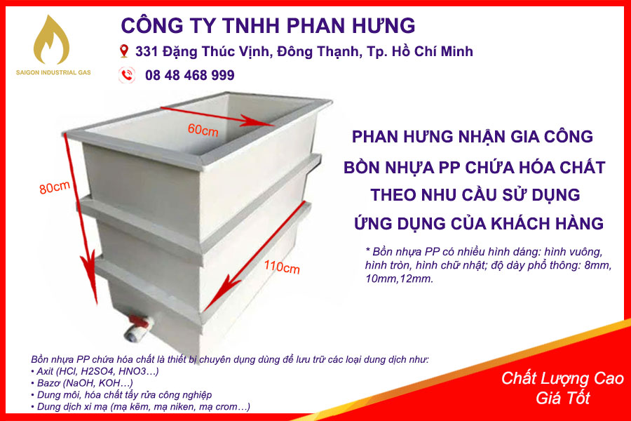 ◊ Ứng dụng nhiều trong: Xi mạ, xử lý nước thải, chứa dung dịch tẩy rửa