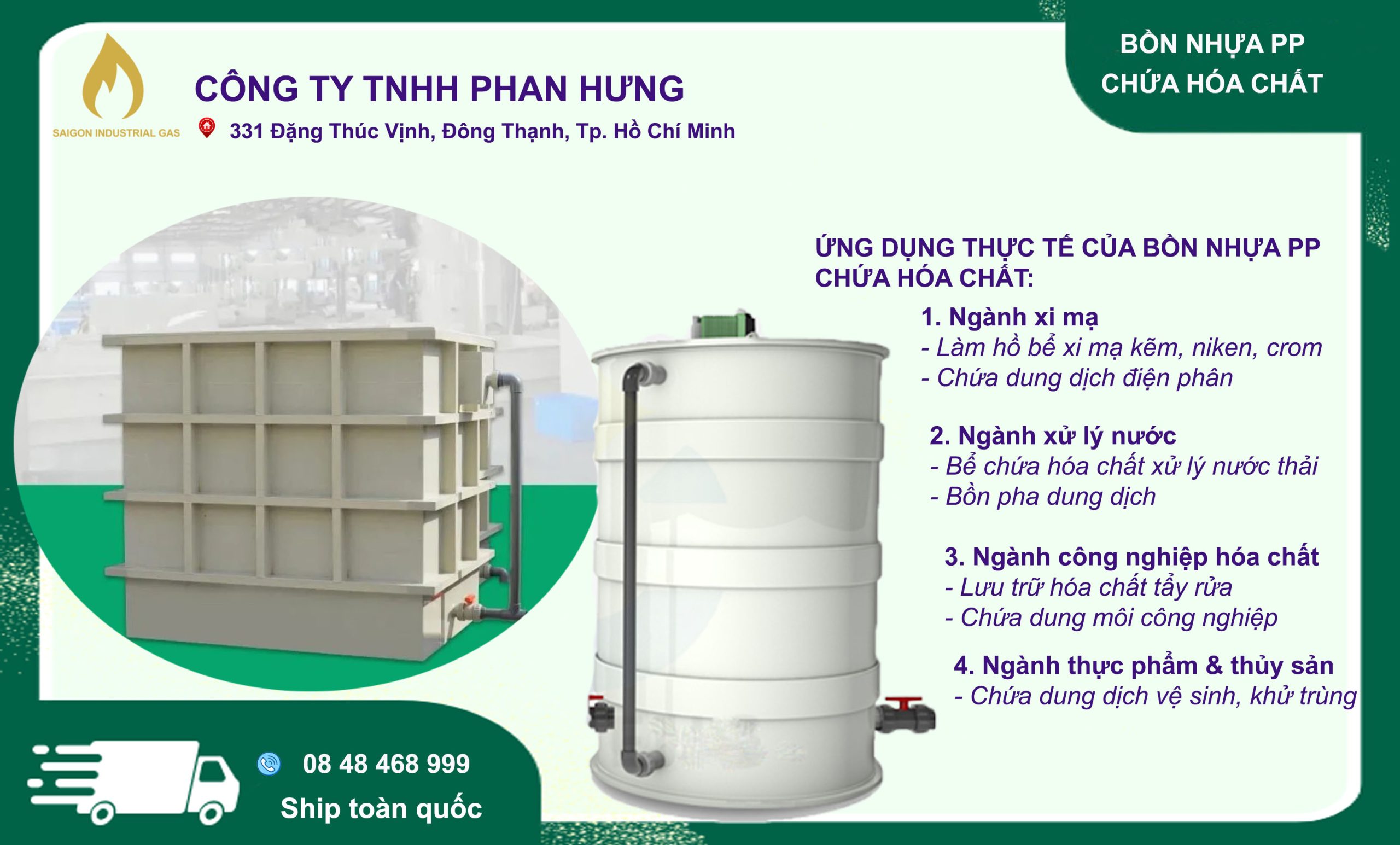 Trong các ngành công nghiệp hiện đại như cơ khí, xi mạ, xử lý bề mặt và sản xuất hóa chất, việc sử dụng bồn chứa chuyên dụng là yếu tố bắt buộc để đảm bảo quy trình cũng như sự an toàn – hiệu quả – độ bền lâu dài.