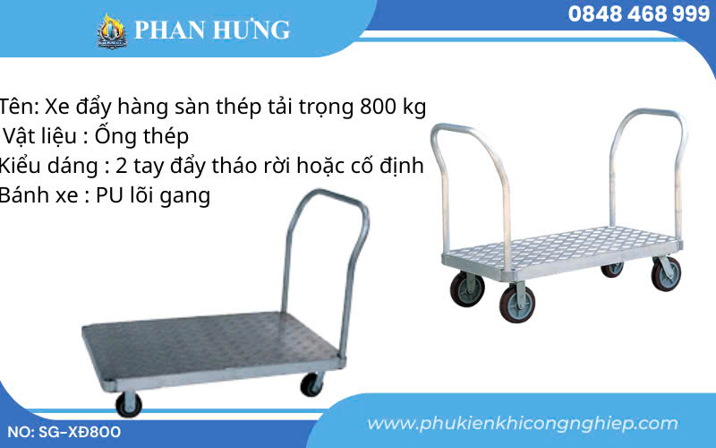 Xe đẩy thép 800kg là dụng cụ vận chuyển vật liệu hạng nặng được thiết kế đặc biệt để vận chuyển các tải trọng lớn và nặng một cách hiệu quả. Được chế tạo với khung thép gia cường và bánh xe bền chắc, nó cho phép người lao động di chuyển thiết bị, thùng hàng, máy móc và vật liệu mà không cần tốn quá nhiều sức lực