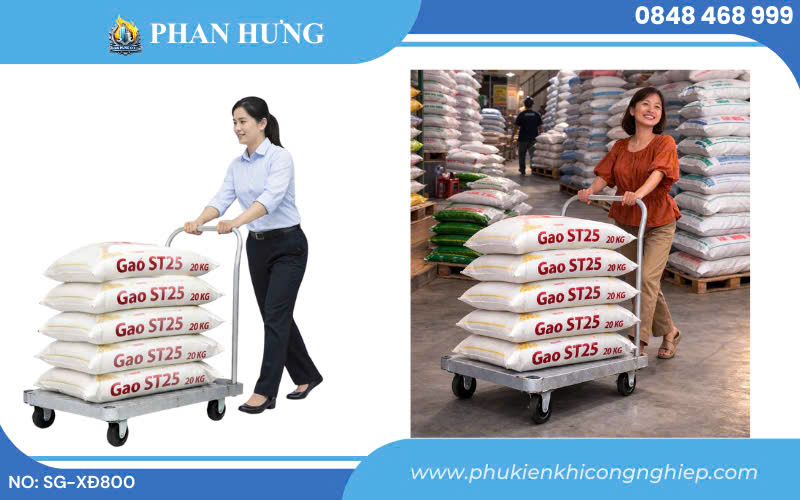 Cấu trúc chắc chắn này đảm bảo xe đẩy có thể chịu được tải trọng nặng mà không bị cong, nứt hoặc yếu đi theo thời gian